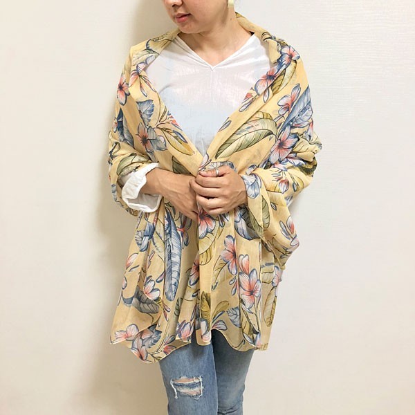 ハイビスカスのトロピカルなモチーフがリゾート感溢れるストール 多色買いも◎