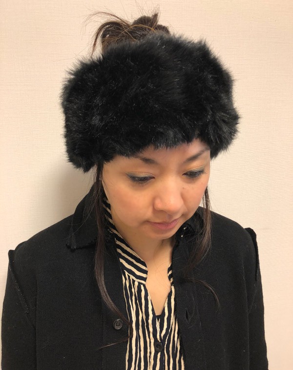 下ろし髪にマッチするのはもちろんだけど、どんなヘアスタイルにも使えて簡単におしゃれが決まるのも魅力です♪やや毛足が長めのファーと裏地のフリース生地が肌触りよく、ニットキャップに引けを取らない暖かさ☆しっかりした平ゴム部分が、サイズ調節してくれるので安心の着け心地です。