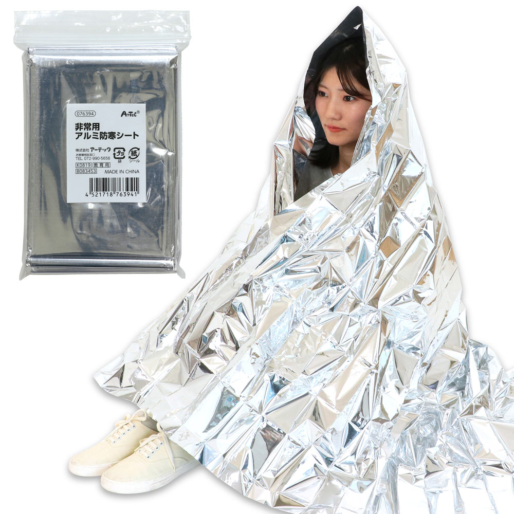 | 商品名 | 非常用 アルミ防寒シート artec 防災グッズ 災害時 自身 避難所 ポンチョ アーテック 男性 女性 アルミ素材 防災ルック アウトドア コンパクト |