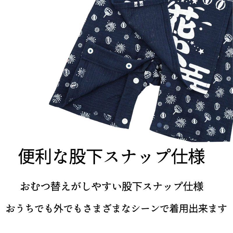 | 商品名 | 法被スーツ 甚平 ロンパース コットン100% ベビー キッズ 赤ちゃん 男の子 女の子 花火 お祭り 夕涼み 夏祭り セパレート 上下セット おむつ替え 甚平セット股下スナップボタン |