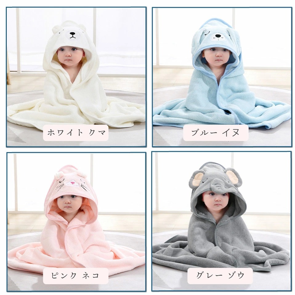 | 商品説明 | 子供用のフード付きバスローブです お風呂上がりや水遊び後の子供をソフトな肌触りで優しく包みます 105cm x 105cmの大きめサイズで頭から全身を包み込み濡れた体を乾かします 80cm × 80cm の小さめサイズも入荷いたしました。 ホワイト(くま)ピンク(ねこ)グレー(ぞう)ブルー(いぬ)のアニマルフードの可愛いデザイン 恐竜と鳥、バンビも新登場!! お洗濯後も素早く乾き,糸くずが出にくくお手入れも楽々 |