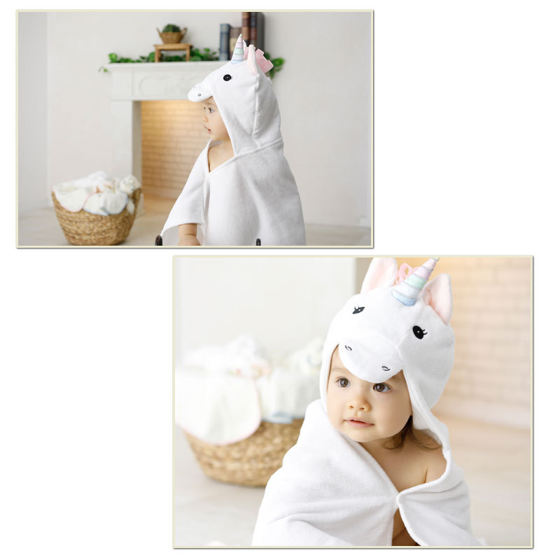 | 商品説明 | お風呂上りに身体を拭いて、フードを被るとかわいいユニコーンに大変身!!軽くて柔らかいバスローブです。フードバスタオルはすごく便利!!「拭く」「くるみ」「はおる」ができて、赤ちゃんの身体を拭く時間を抑えながらも、新生児 赤ちゃんを湯冷めからしっかり守ってくれます。0歳から2歳くらいまで十分着用できます。夏の海やプールサイドでも可愛くて大人気。オールシーズンいつでも使えるものだからギフトにも最適です。赤ちゃんは、タオルを口に入れたり、吸うこともあるから、安心素材のタオルが欲しい。そんな思いをお持ちのママも安心の品質です。中国製ですが、【ホルマリン検査】「アゾ染料検査」「堅牢度検査」全て日本規格合格済です。 |