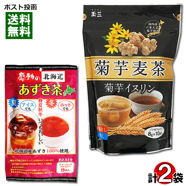 中村食品産業 あずき茶×1袋(ティーバッグ8入り)&玉三 菊芋麦茶×1袋(ティーバッグ10入り) 計2袋詰め合わせセット