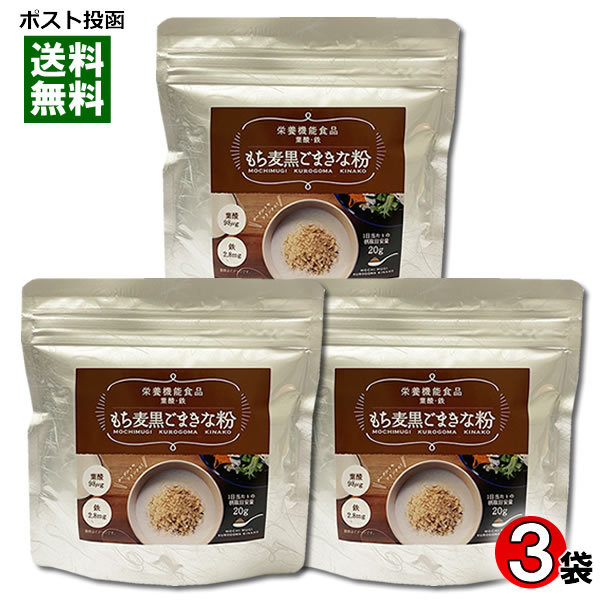 もち麦黒ごまきな粉 150g×3袋まとめ買いセット 国産大豆使用