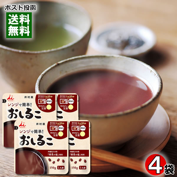 井村屋 レンジで簡単 おしるこ 4人前お試しセット 沖縄県久米島 球美の塩 使用 無添加 レトルト