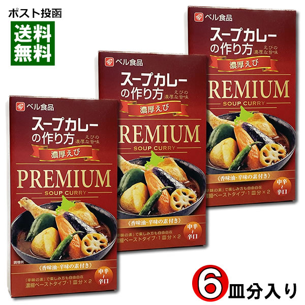 ベル食品 スープカレーの作り方(スープカレーの素) プレミアム 濃厚えび 2皿分入り×3箱まとめ買いセット