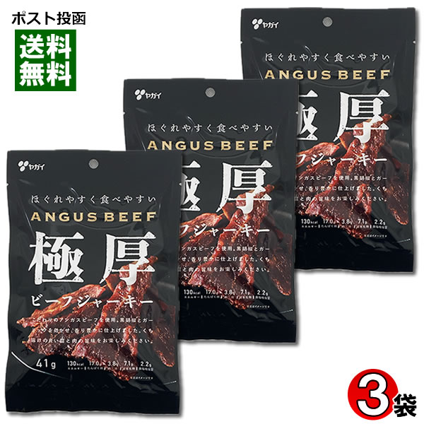 ヤガイ ほぐれやすく食べやすい 極厚ビーフジャーキー 41g×3袋 詰め合わせセット アンガスビーフ使用 肉のおつまみ 珍味