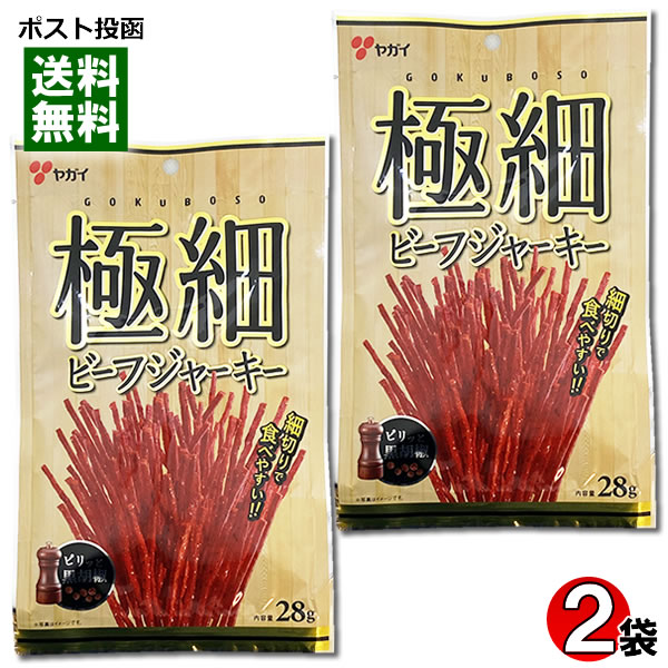 極細ビーフジャーキー ピリッと黒胡椒 28g×2袋お試しセット ヤガイ おつまみ 珍味
