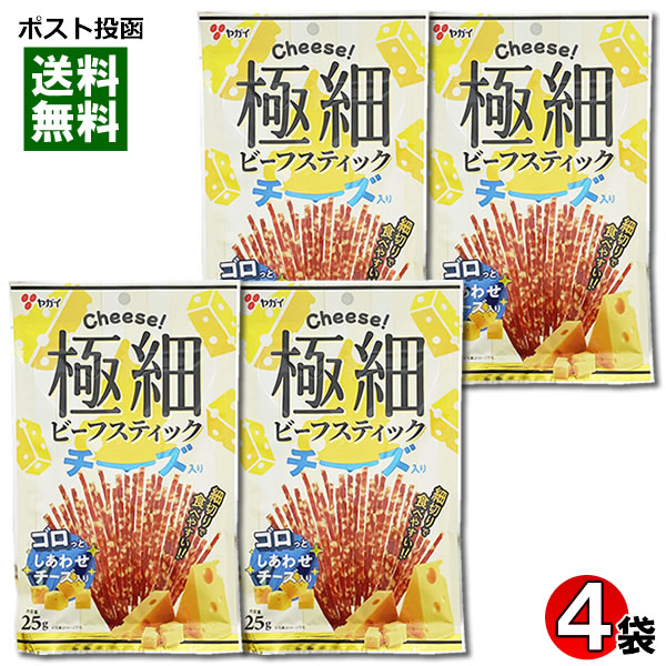 極細ビーフスティック チーズ入り 25g×4袋詰め合わせセット ヤガイ おつまみ 珍味 ビーフジャーキー チーズ味