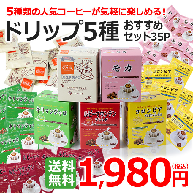 リピート購入OK!送料無料1980円。5種類のドリップアソートセットです♪