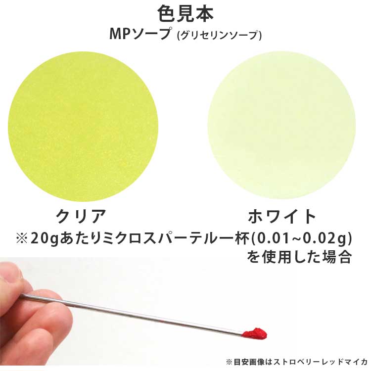 | ■特長 | レモンのような黄色のマイカです。 手作り石けんや手作りコスメの色付けに使用出来ます。 ※コールドプロセス石けんで使用の場合、最初はオレンジ色に変わる場合があります。 24〜48時間後には黄色に戻ります。 マイカ(雲母)は花こう岩や雲母片岩を粉砕して得られる鉱物の一種です。 |