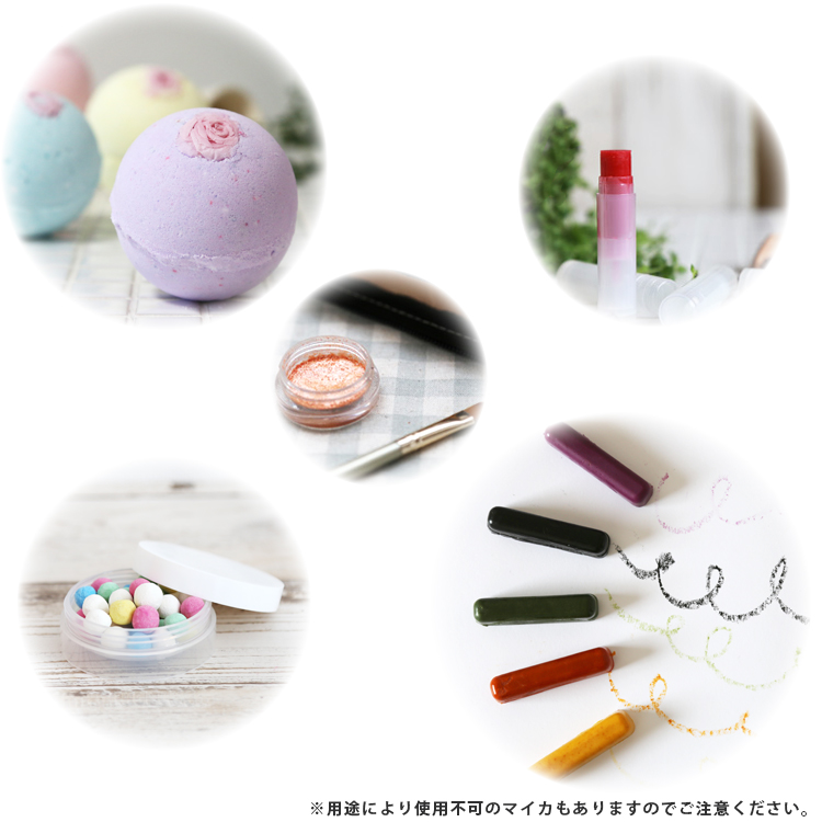| ■ご注意 | ・モニターにより色や質感の見え方に違いが生じる場合があります。 ・同じ製品でもロットにより、色合いや香り等に多少違いが生じる場合があります。 ・お肌に触れる手作りコスメを作る際には、パッチテストを行い十分確認を行ってください。 自己責任の元、お楽しみ下さい。 |