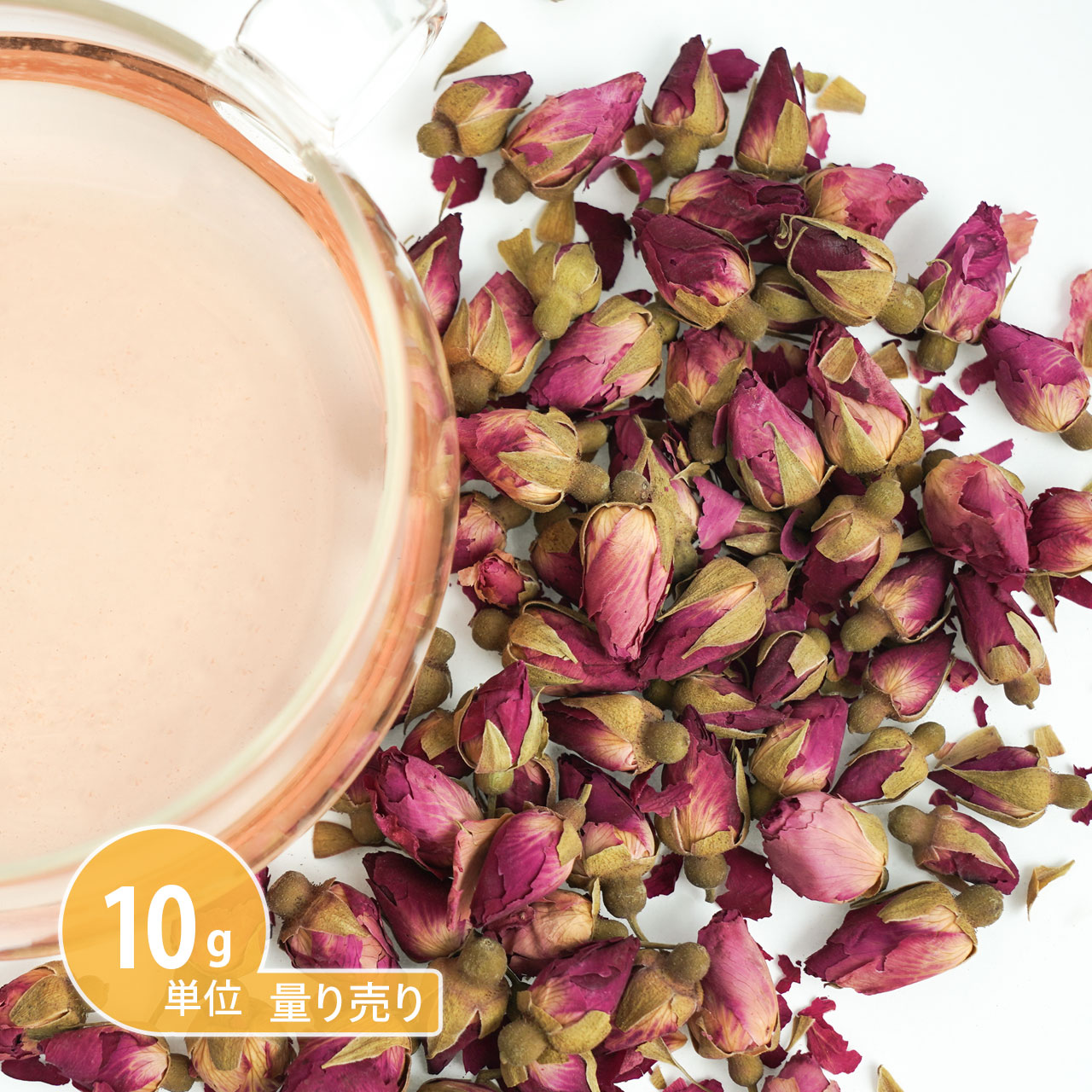 | ■特長 | パープルローズの蕾を乾燥させたものです。 優美な香りをもつことから「花の女王」と呼ばれ、花から採れる精油は最高級品とされます。 かのクレオパトラがお風呂の中にバラの花びらを浮かべたというエピソードも。 だるさを感じるときやブルーな気分のときにオススメです。 色により風味や効能に大きな違いはございませんが、パープルはピンクやレッドに比べて少しだけ力強さを感じる、クッキリとした香りが特徴です。 可愛らしい蕾は手作り石鹸の飾り付けにも向いています。 香りと味:甘く上品な香りと、さっぱりとしてクセがありません。 他利用法:手作り化粧品やポプリ、お菓子作りなど。 お得な100g単位はこちら⇒ |