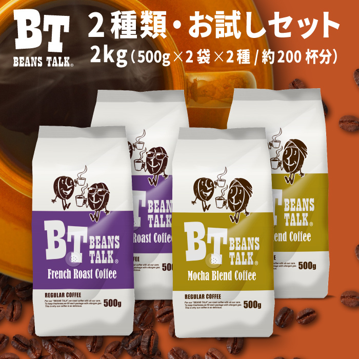 コーヒー豆 2kg コーヒー お試しセット 2種類 深煎り フレンチブレンド モカブレンド アラビカ 珈琲 ビーンズトーク