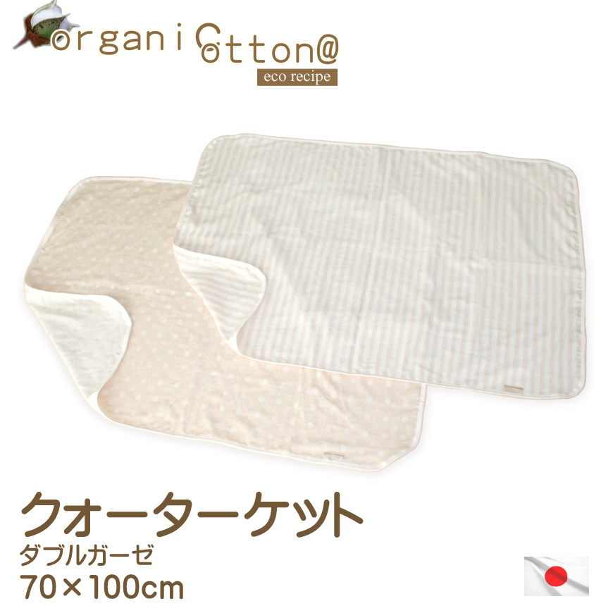 オーガニックコットン クォーターケット 70×100cm 日本製 洗える 綿100% ダブルガーゼ ドット ボーダー かわいい ナチュラル ベビーケット ガーゼケット