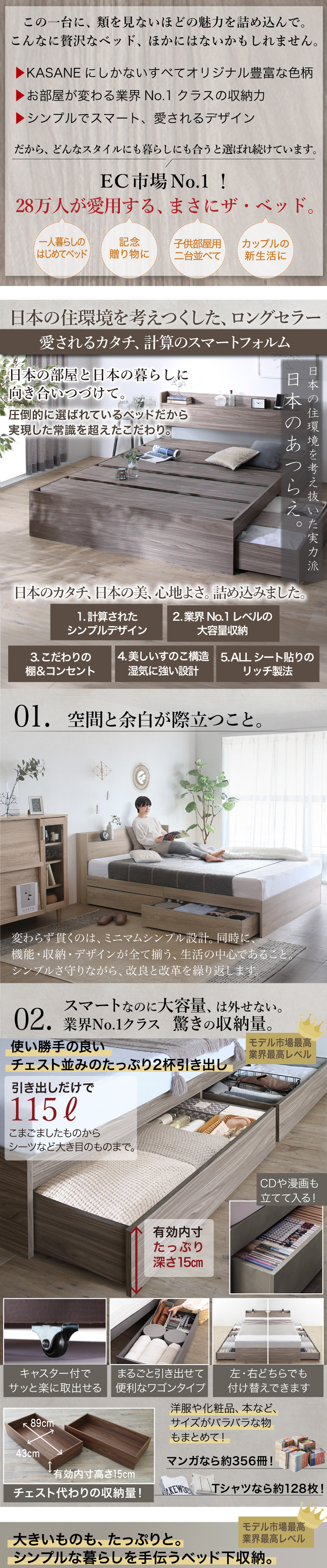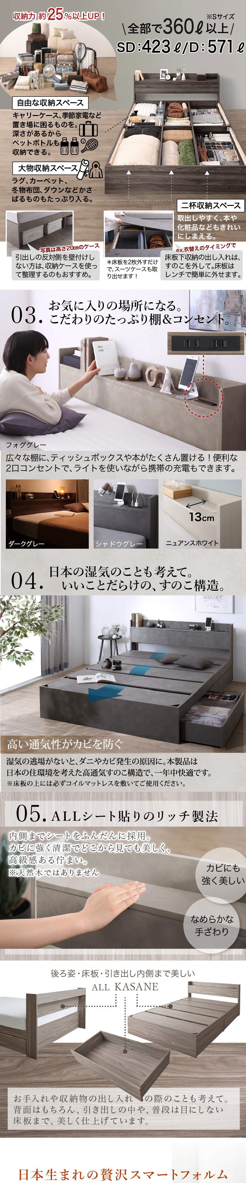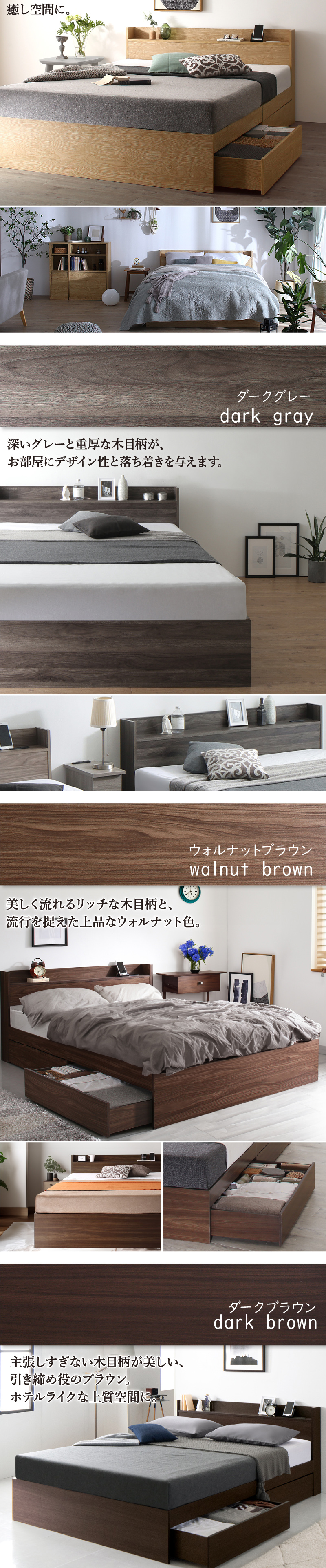 ロングセラー 人気 ベッド ベッドフレーム 収納付き 木製ベッド コンセント付き 収納ベッド シャビーナチュラル ブラック[00]