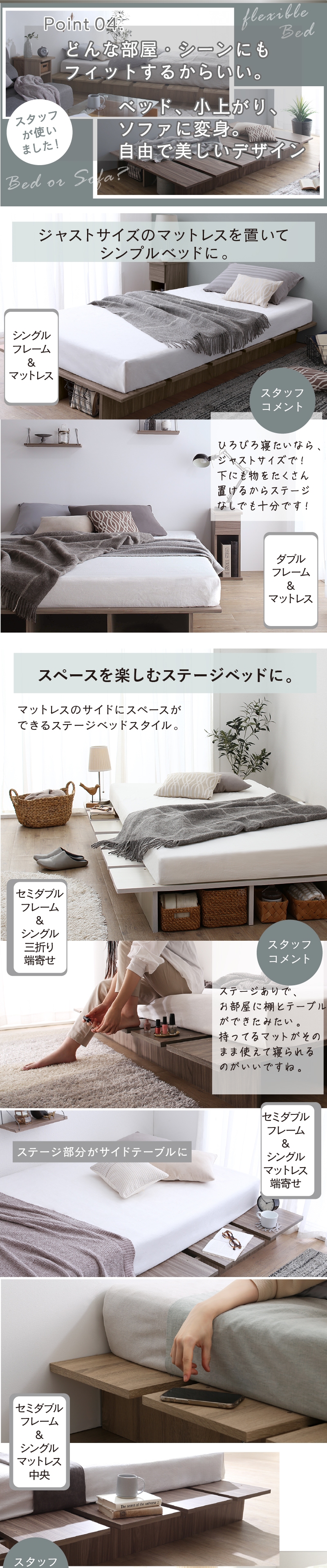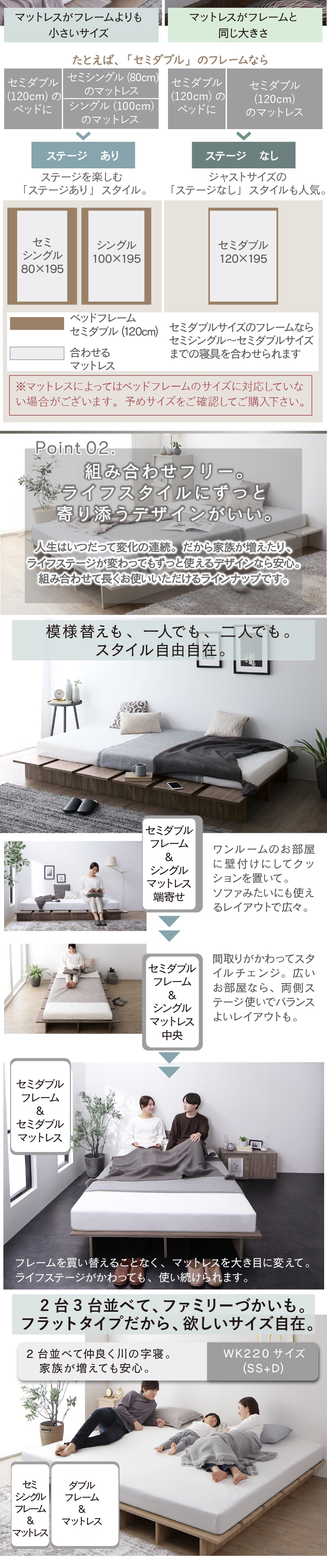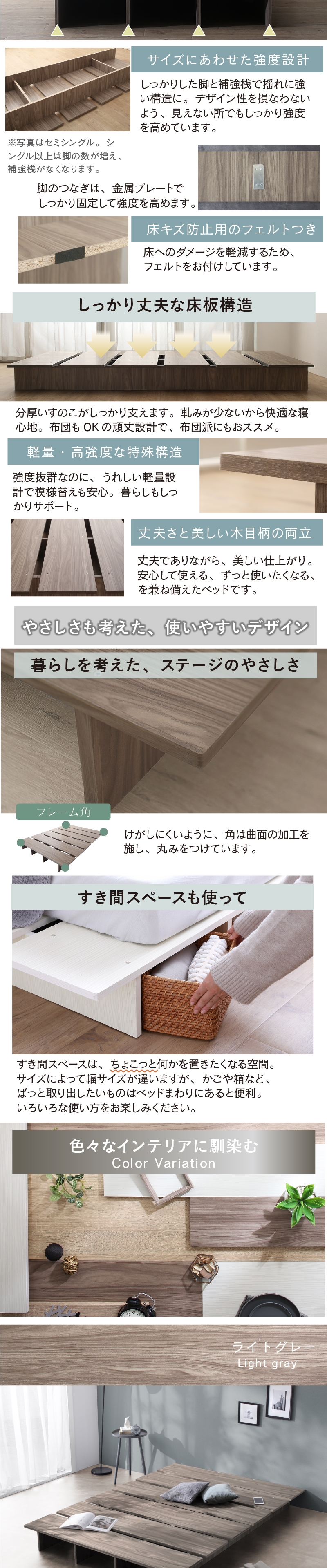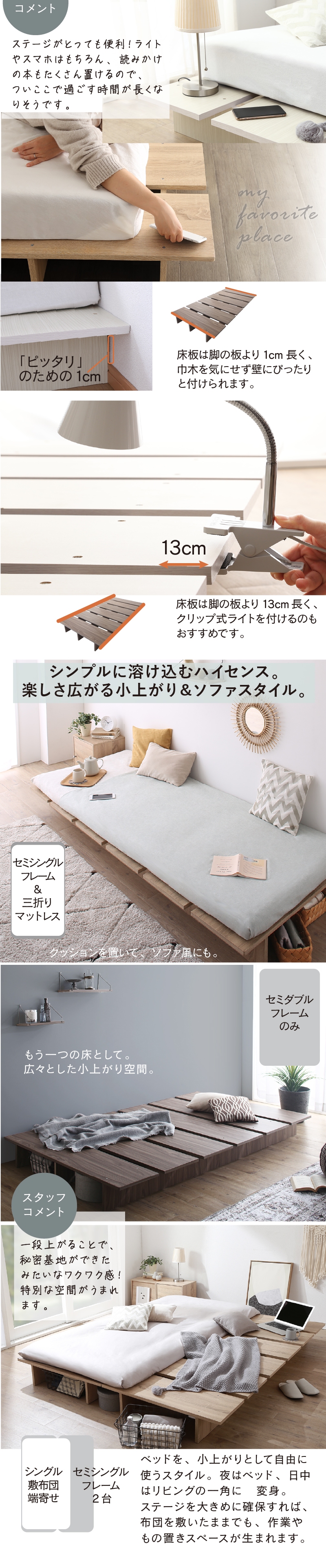 ベッド ベッドフレーム セミシングルベッド ベット 天然木調 ステージベッド すのこ ローベッド フロアベッド ヘッドレス おしゃれ[00]