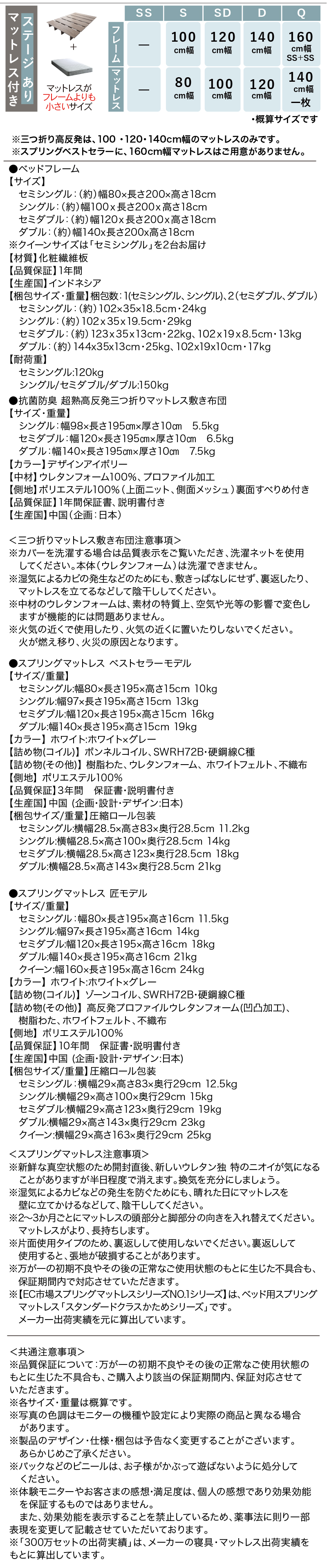 ステージ無し 匠モデルスプリングマットレス付