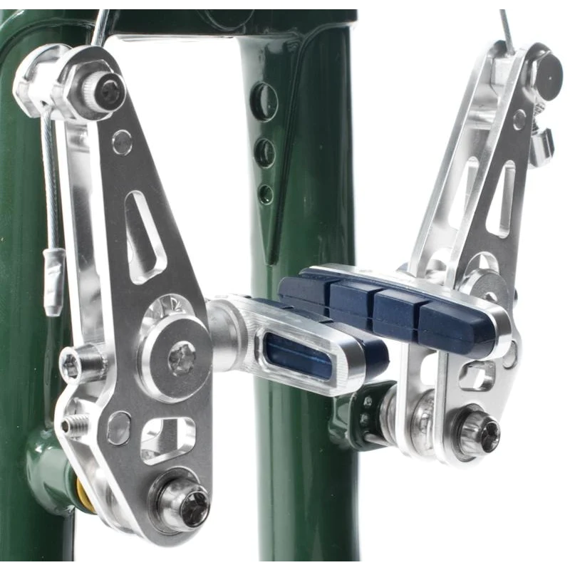 VO Zeste Brake カンチレバーブレーキ 前後セットアメリカのメリーランド州の "カッコ良い+快適性" なメーカー "Velo Orange"肉抜きされたアルミが醸し出すカッコ良さ調整しやすさも兼ね備えています!前後セットになります以下 メーカー文Zeste ブレーキは、私たちが試した中で最も強力で適応性の高いカンチレバー ブレーキかもしれません薄型のカンチレバー ブレーキは、サイクリストや通勤者の間で人気がありますダート トレイル ライダーとシクロクロスライダーは、優れた泥除去のためのダブル プレート デザインを高く評価しますセンタリングを容易にするために、各アームにスプリング テンション アジャスターがありますブレーキパッドスロットの上下調整により、フレームとフォークの互換性が向上しますアーチワイヤーの端にあるバレル アジャスターにより、セットアップが簡単になり、完璧なクリアランスとワイヤーの角度を微調整できますブレーキパッドホルダーは調整可能なトーインを備えています付属の高品質パッドにより、すばやく安全に停止できますピボットボルトとワッシャーは、長期間の耐食性のためにステンレス鋼アーム、パッド、およびすべてのハードウェアの重量は 292 グラム