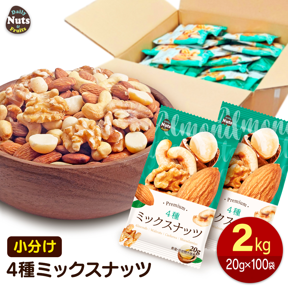 | 商品名 | 小分け4種ミックスナッツ 約2kg (20g×約100袋) |