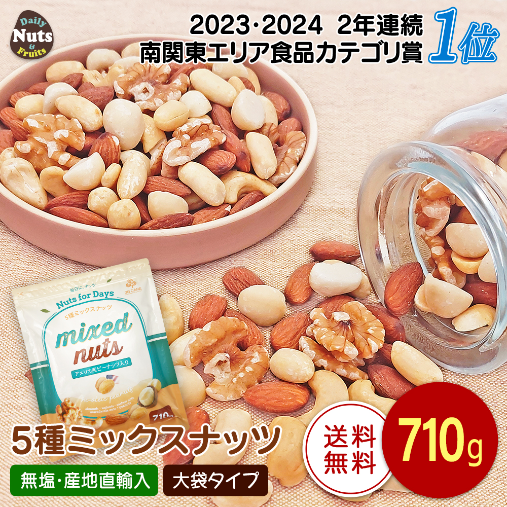 | 原材料名 | 落花生(アメリカ産)、 アーモンド、くるみ、カシューナッツ、マカダミアナッツ (落花生とアーモンド、カシューナッツは焙煎。くるみとマカダミアナッツは生。) |