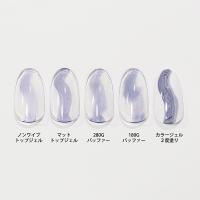 未硬化ジェルあり・なし、マットトップジェル後、バッフィング後