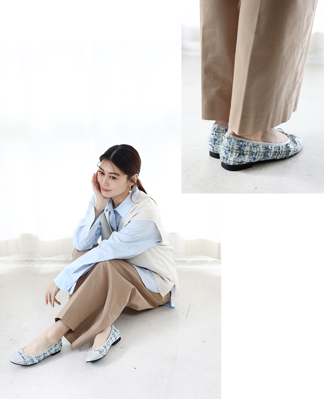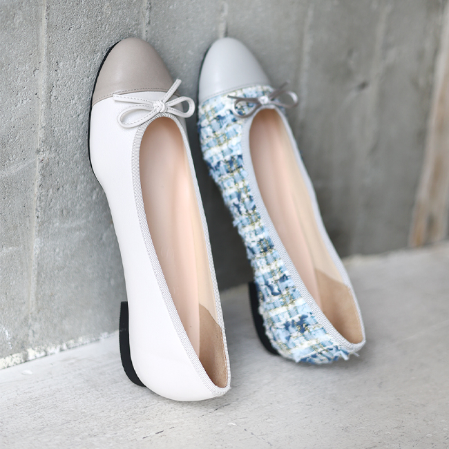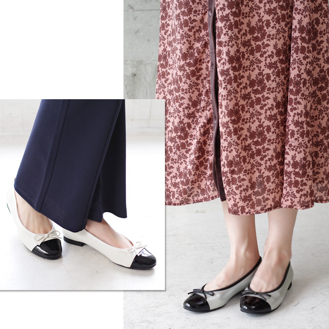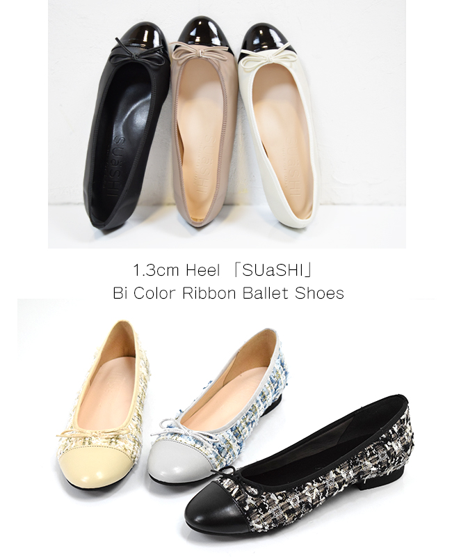 「SUASHI」のバイカラーバレエシューズ。