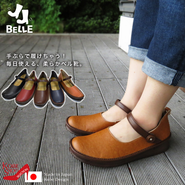 BELLE ベル カジュアルシューズ レディース 日本製 コンフォート ストラップ ハンズフリー 歩きやすい 疲れにくい おしゃれ 黒 3cm (FOO-YK-KAYAK)