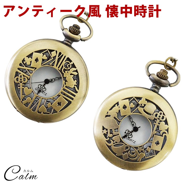 不思議の国のアリスをイメージした小型の懐中時計。
