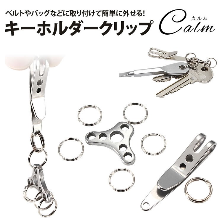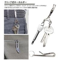 ステンレス製のクリップ式のキーホルダーでベルト・ポケットやバッグの中などに取り付けることができます。クリップなので簡単に脱着可能!
