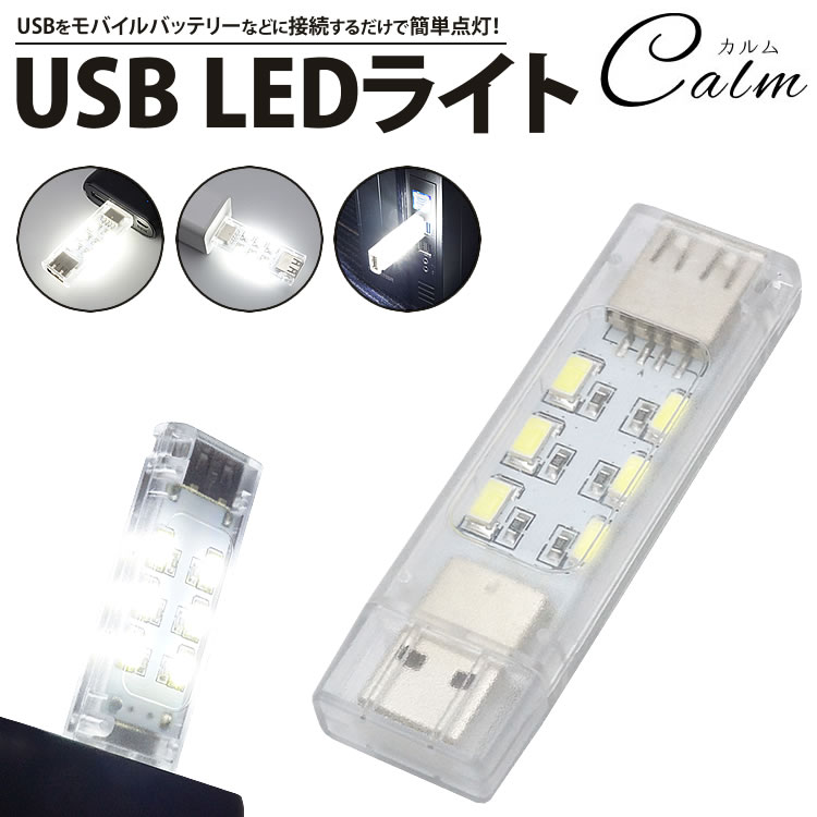 モバイルバッテリーやUSB-ACアダプタなどのUSBポートに挿すだけで簡単に点灯可能!