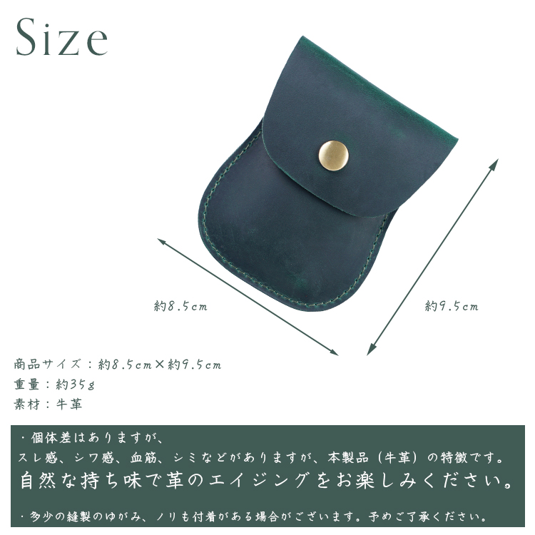 本製品(牛革)の特徴です。自然な持ち味で革のエイジングをお楽しみください。