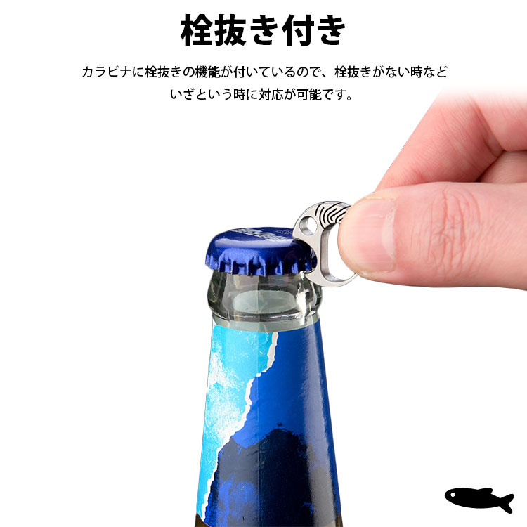 カラビナに栓抜きの機能が付いているので、栓抜きがない時などいざという時に対応が可能です。