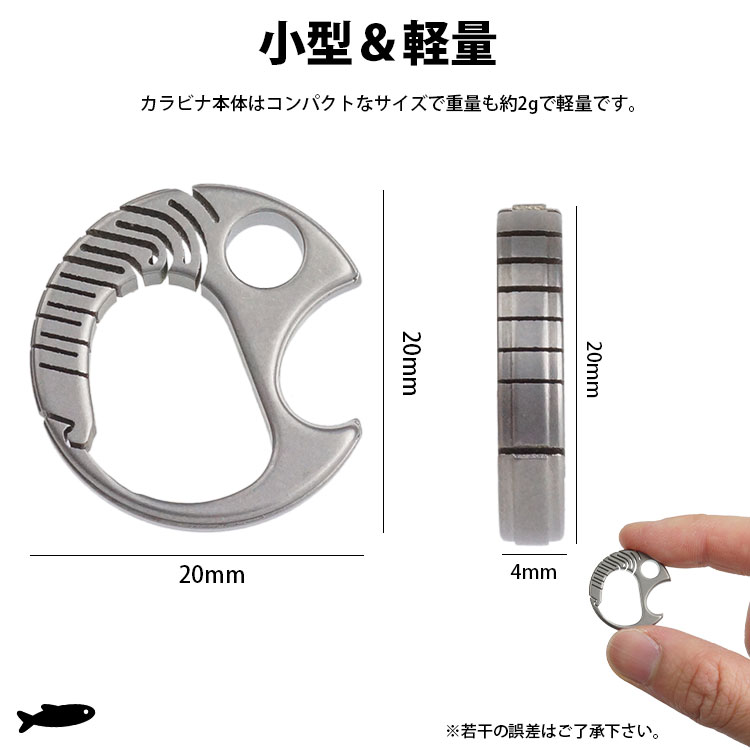カラビナで身につけて持ち運ぶことができる魚型のチタン合金製カラビナ キーホルダー