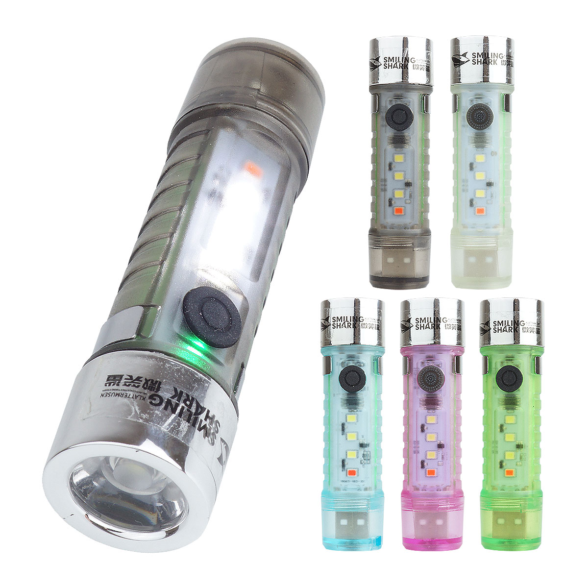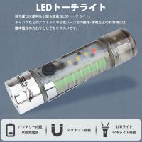 点灯モード:LEDライト(強)-LEDライト(弱)-LEDライト(点滅)-COBライト(強)-COBライト(弱)-SOS(赤LED)