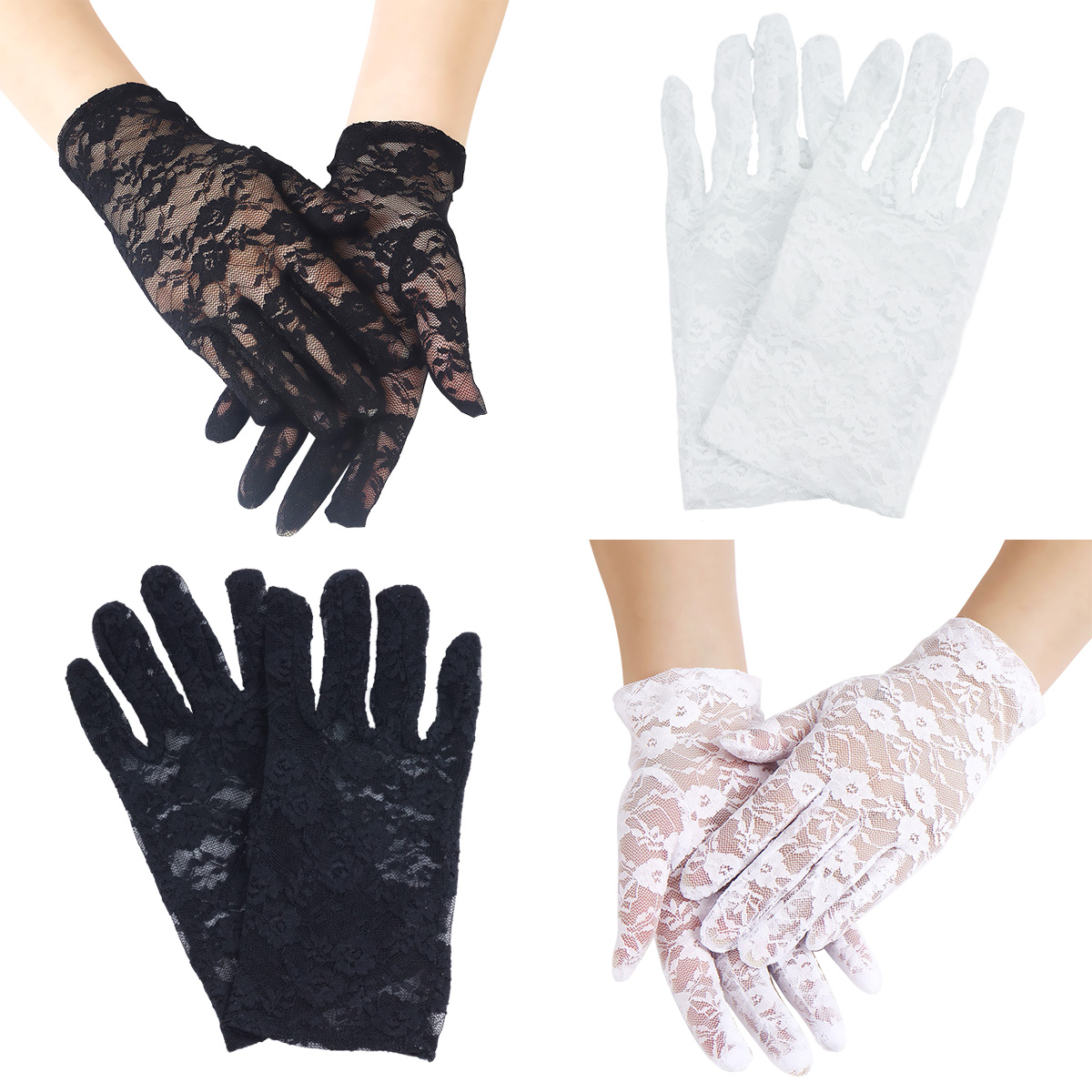 手袋 レース グローブ 黒 白 2個セット レース手袋 パーティードレス ネイル隠し ショート丈 パーティー 結婚式 演奏会 披露宴 仮装 冠婚葬祭 ダンス 黒手袋