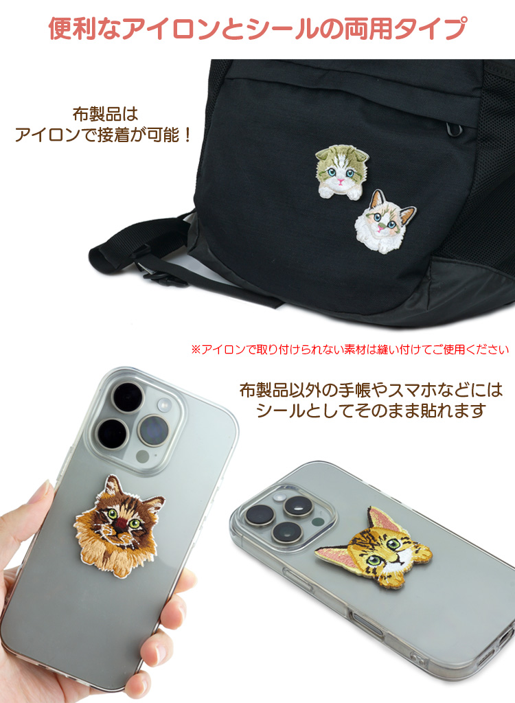 布製品はアイロンで接着が可能!布製品以外の手帳やスマホなどにはシールとしてそのまま貼れます。