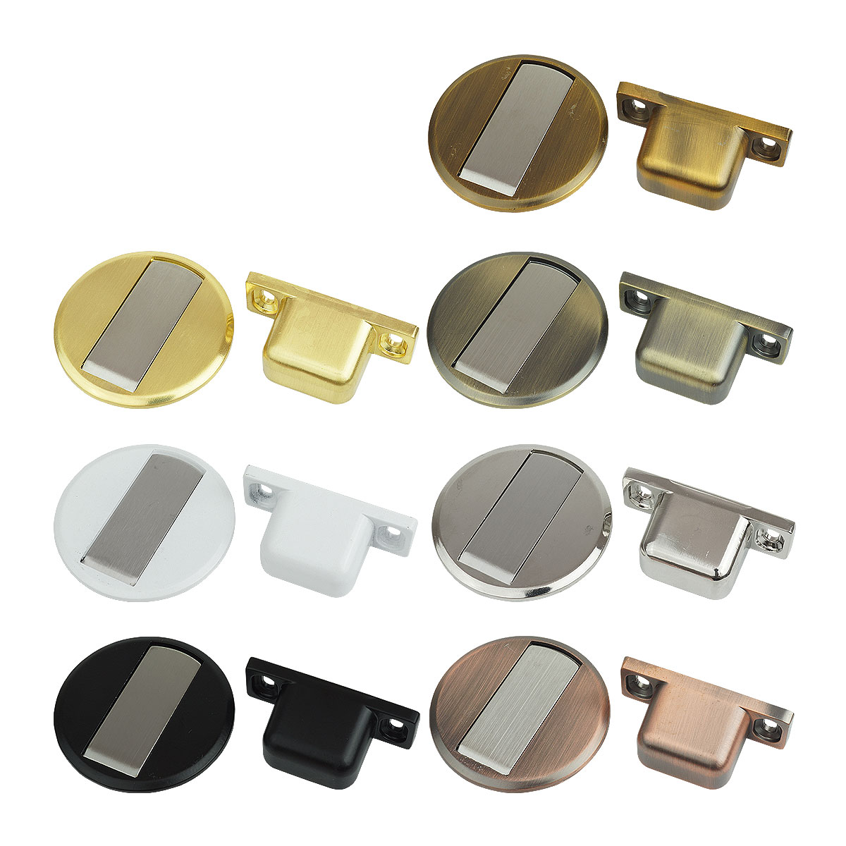 ドアに取り付けたマグネット部分が床に取り付けたプレートの上に来るとプレートの金属部分がマグネットにくっついてドアの動きを止めてくれます。