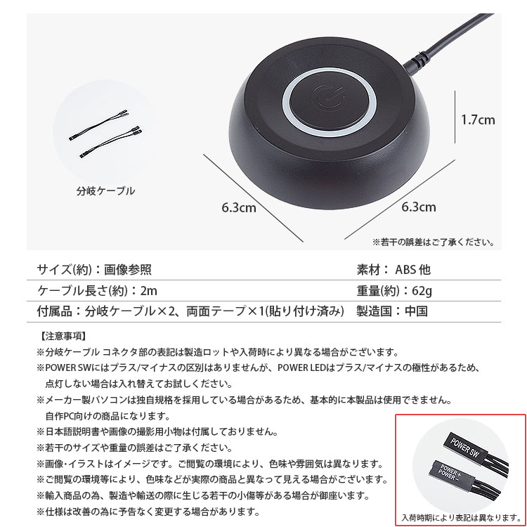 ※POWER SWにはプラス/マイナスの区別はありませんが、POWER LEDはプラス/マイナスの極性があるため、