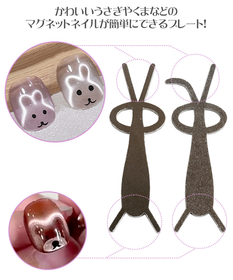 マグネットネイル ツール プレート単体 ジェルネイル マグネットツール 2個 セット うさぎ くま 垂れ耳 アニマル セルフネイル ネイル用品