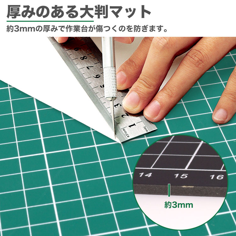 約3mmの厚みで作業台が傷つくのを防ぎます。