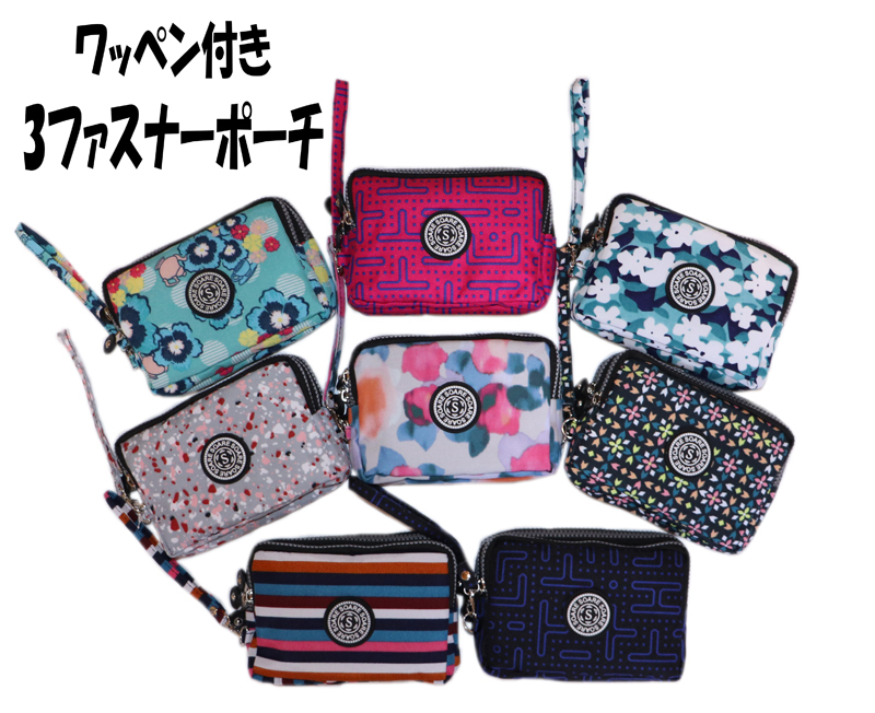 特価セール 3ファスナーポーチ 仕分けポーチ 仕切りポーチ ポーチ 使えるポーチ 使いやすい 使い分け 柄ポーチ 通帳入れ 小物入れ 3ポケット ファスナーポーチ