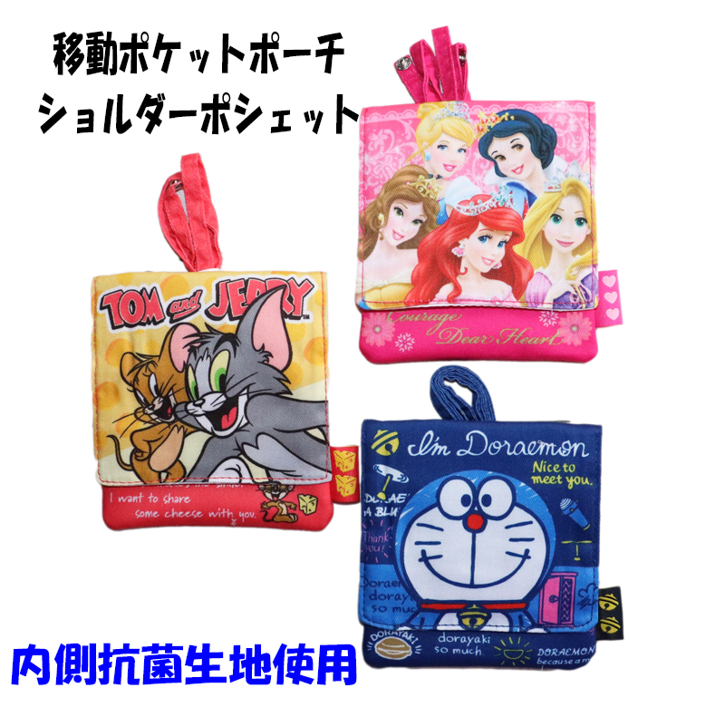 移動ポケット ポケットポーチ ポシェット キッズ鞄 ちょこっとポケットポーチ ドラえもん トムとジェリー プリンセス ディズニー キッズ 移動ポーチ 移動ポケット ティッシュケース 3ポケット 斜め掛け 軽量