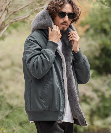 181cmのモデルがLサイズを着用。リバーシブルで雰囲気を変えられるファーブルゾン。柔らかいファーと、ミリタリーの雰囲気で着やすいナイロン生地のリバーシブルになっているので、服に合わせて変えることで様々なコーデに合わせて頂けます。※着用画像と商品単体画像で色が異なる場合がございます。※商品単体画像を実物により近づけております。Mサイズ/着丈70cm肩幅46cm身幅59cm袖丈64cmLサイズ/着丈72cm肩幅47cm身幅61cm袖丈65cmXLサイズ/着丈74cm肩幅48cm身幅63cm袖丈66cm※※製造元提供。素材:表地:ナイロン100%裏地:ポリエステル100%リブ:ポリエステル100%