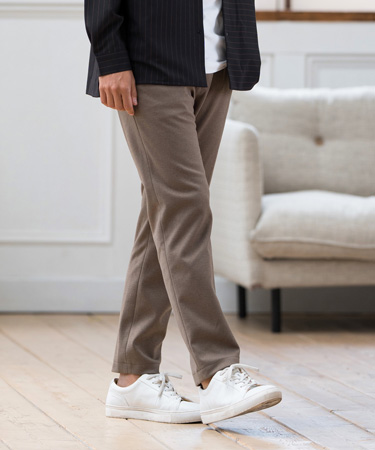 上品な生地と、スタイリッシュなシルエットがワンランク上の雰囲気に。