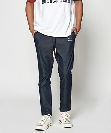 マリンブランドとのコラボコレクションMaterial(WHITE)SPORTEXマルチギア2WAYストレッチと防シワ、接触冷感、UVカット、撥水、透湿、ウォッシャブル性を兼ね備えた多機能高品質素材。Material(INDIGO&BLACK)COOLMOTIONツイルコットンとT-400COOLMOTIONポリエステルを織り交ぜたツイル生地。接触冷感、吸水速乾、ウォッシャブル性、化繊の軽量感を生かしつつ天然繊維のような自然な表情も持ち合わせています。Spec高機能なストレッチツイル生地を採用したイージータイトパンツ。ファスナー開き仕様。フロントにはコラボレーションロゴ刺繍、バックにはオリジナル織りネームを配置しています。ポケット袋布にはメッシュ素材、ウエストにはシュリンクチップ加工を施したドローコードを使用。素材の伸縮性を生かした綺麗なタイトシルエットに仕上げています。※写真はサンプルの為、実際の商品は若干仕様の変更を施される場合もございます。その際はご了承の程お願い致します。