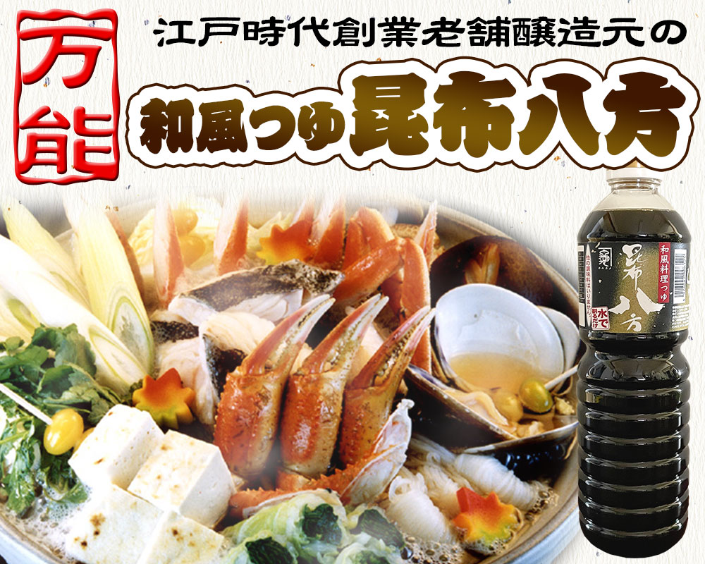 【中村醸造 昆布八方1L 1本】水で割るだけで美味しくできる和風料理つゆ[※SP]