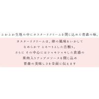 カスタードクリームをやわらかな蒸しケーキで包みアップルソースを入れたふんわりカスタードケーキ。