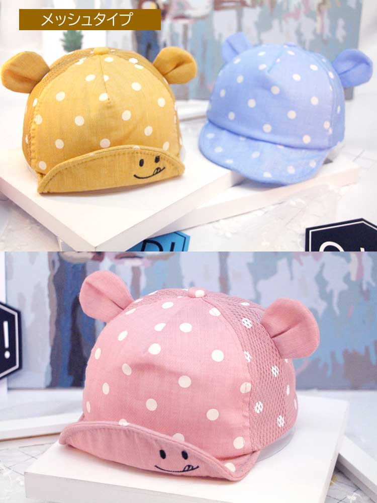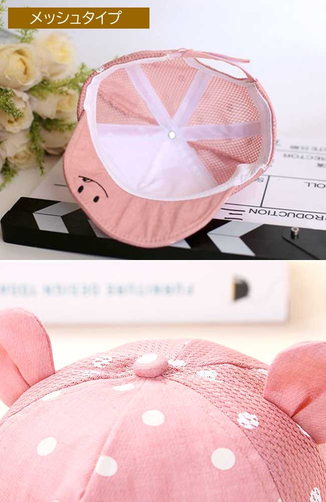 ベビー 帽子 キッズ 帽子 赤ちゃん ハット キャップ 日除け 日よけ 春夏 夏 男の子 女の子 くま 耳 メッシュ つば 新生児 ガーゼ かわいい おしゃれ 保育園