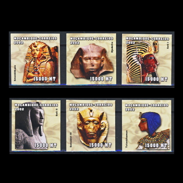 ■モザンビーク切手 2002年 古代エジプト / ファラオ 6種完 無目打 (1)